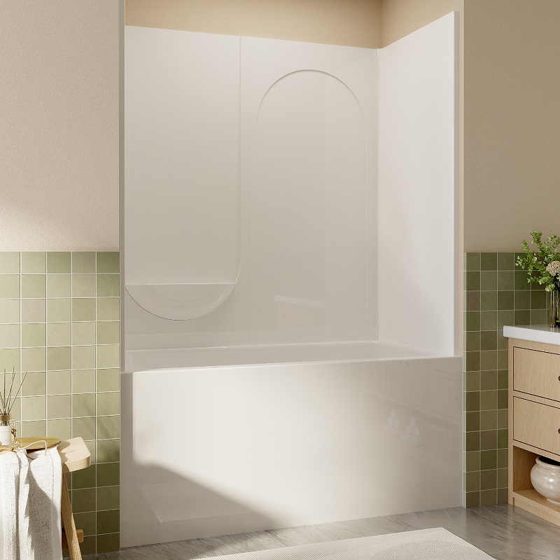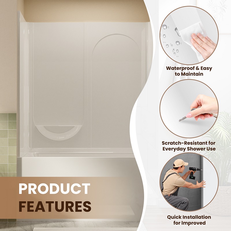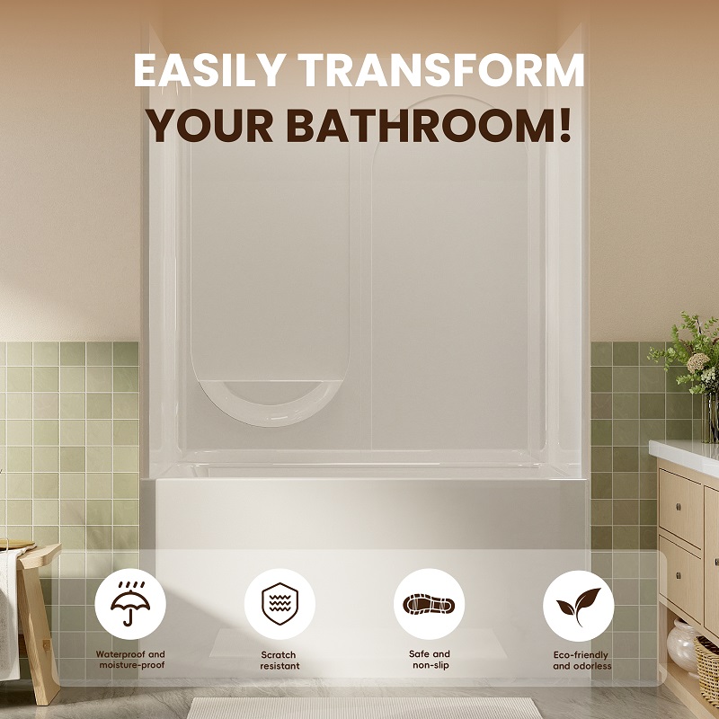 Designed for commercial, residential, and institutional bathrooms, this durable acrylic panel features a smooth, waterproof, and mould-resistant surface. Its 28″ × 60″ × 60″ size fits standard shower and bathtub walls, offering a sleek, modern look.