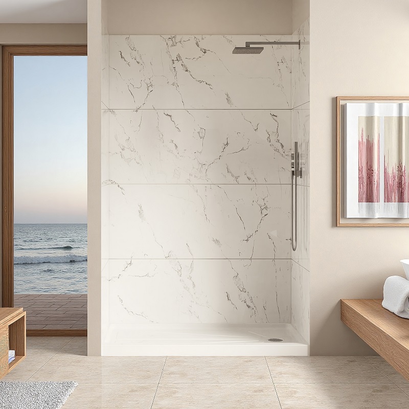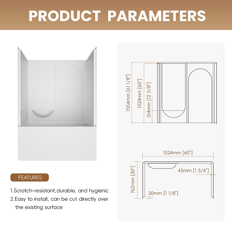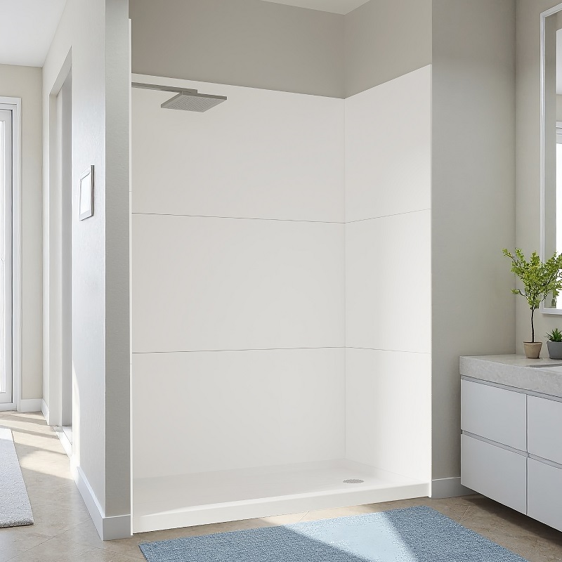 Designed for commercial, residential, and institutional bathrooms, this durable acrylic panel features a smooth, waterproof, and mould-resistant surface. Its 28″ × 60″ × 60″ size fits standard shower and bathtub walls, offering a sleek, modern look.